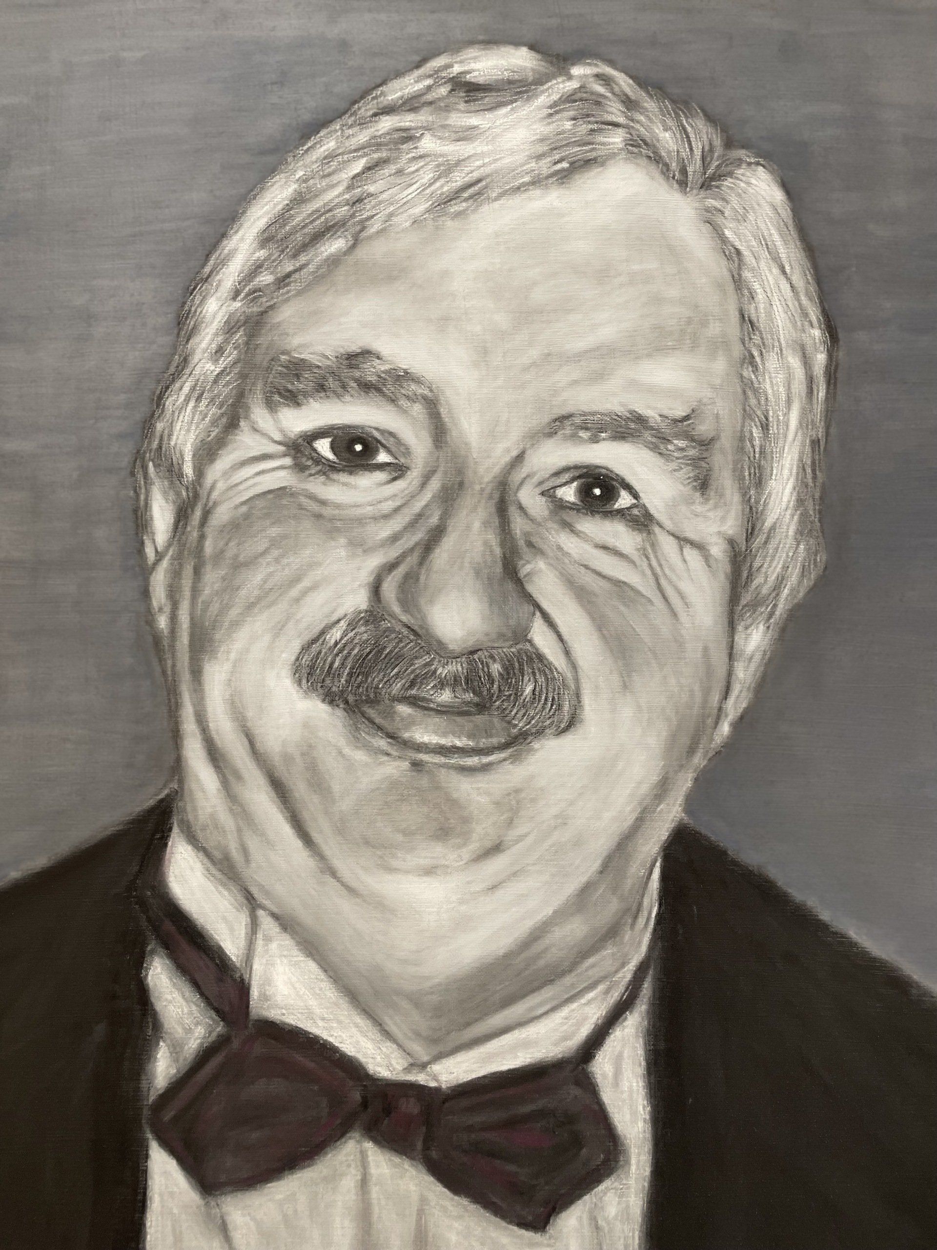 I would be happy to paint you the portrait you want based on the original image in charcoal and graphite on canvas